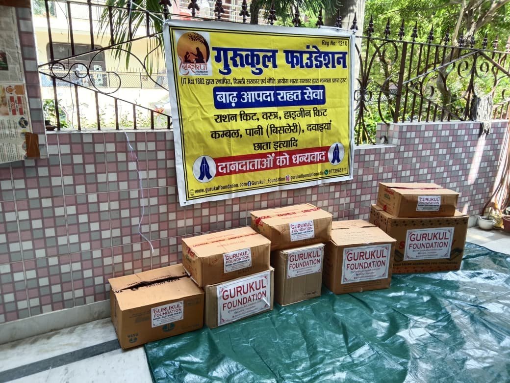 Gurukul Foundation is conducting “Bāḍh Āpada Rahat Seva” to support families affected by recent flooding. As shown on the event banner, this is a focused disaster-relief drive delivering essentials to people in need with dignity and speed. Relief kits include ration supplies, clothing, hygiene kits, blankets, safe drinking water (bottled), and basic medicines, ensuring that both immediate nourishment and health needs are addressed. Boxed materials are prepared, labelled, and staged for quick distribution so volunteers can reach impacted localities efficiently. The drive emphasizes transparent, accountable aid—thanking donors openly and committing to pass contributions to the intended beneficiaries. Gurukul Foundation operates as a public trust established under the Indian Trusts framework (IT Act, 1882) and recognized by the Delhi Government, and it brings that compliance mindset to field operations, procurement, and reporting. Community participation is central: supporters can help by funding ration kits, underwriting hygiene and medical supplies, or volunteering for last-mile delivery and crowd management at distribution points. Priority items cover staples for cooking, warm coverings, sanitary and cleanliness needs, potable water, and over-the-counter remedies that reduce post-flood disease risk. Through coordinated effort with local stakeholders, the relief team aims to stabilize vulnerable households, restore confidence, and bridge the gap between compassion and timely assistance. Donor gratitude is integral to this campaign, and each box dispatched represents a shared commitment to stand with flood-hit families until basic safety, health, and food security are restored.